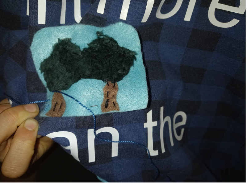 We waren er op het laatste moment aan begonnen maar het is toch een tof resultaat geworden. Het is ook zeer goede reclame voor onze blog!!! Het is ook zeer tof om een oude saaie trui weer grandioos te maken, en je moet ook geen nieuwe truien kopen omdat de oude een beetje versleten is. Gewoon een lapje op het gat naaien en versieren en je bent klaar. Bedenk maar wat er zou gebeuren als heel de wereld dat doet.